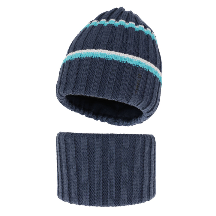 Czapka i komin dla chłopca jesienny, wiosenny komplet, z bawełną, niebieski Fenix