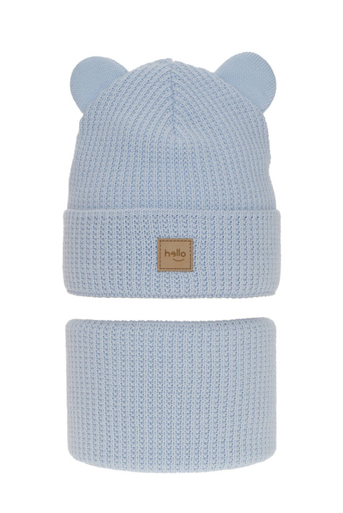 Czapka i szalik dla dziewczynki zimowy komplet, szary, z dwoma pomponami Gabriela