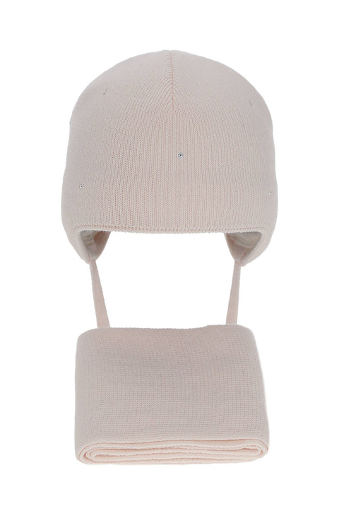 Czapka i komin dla dziewczynki zimowy komplet, beżowy, z dwoma pomponami, wiązany Marlen