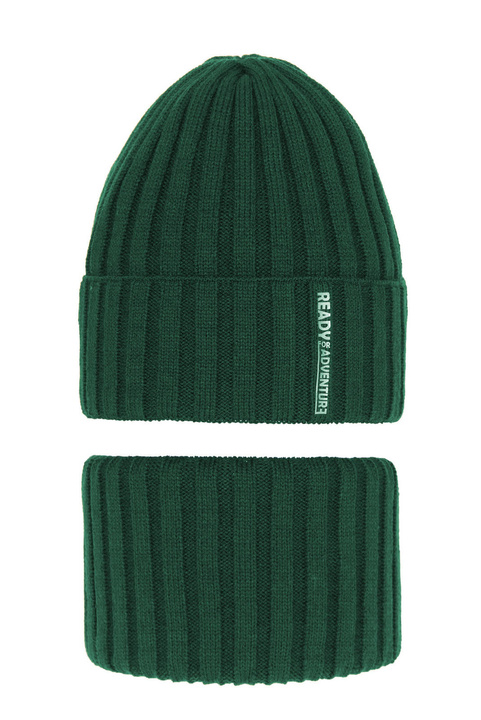 Czapka i komin dla chłopca zimowy komplet, ciemnoszary, z pomponem, wiązany Pikolo