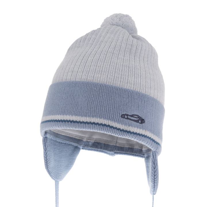 Czapka jesienna, wiosenna dla chłopca, jasnoniebieska, wiązana, z pomponem Jacob