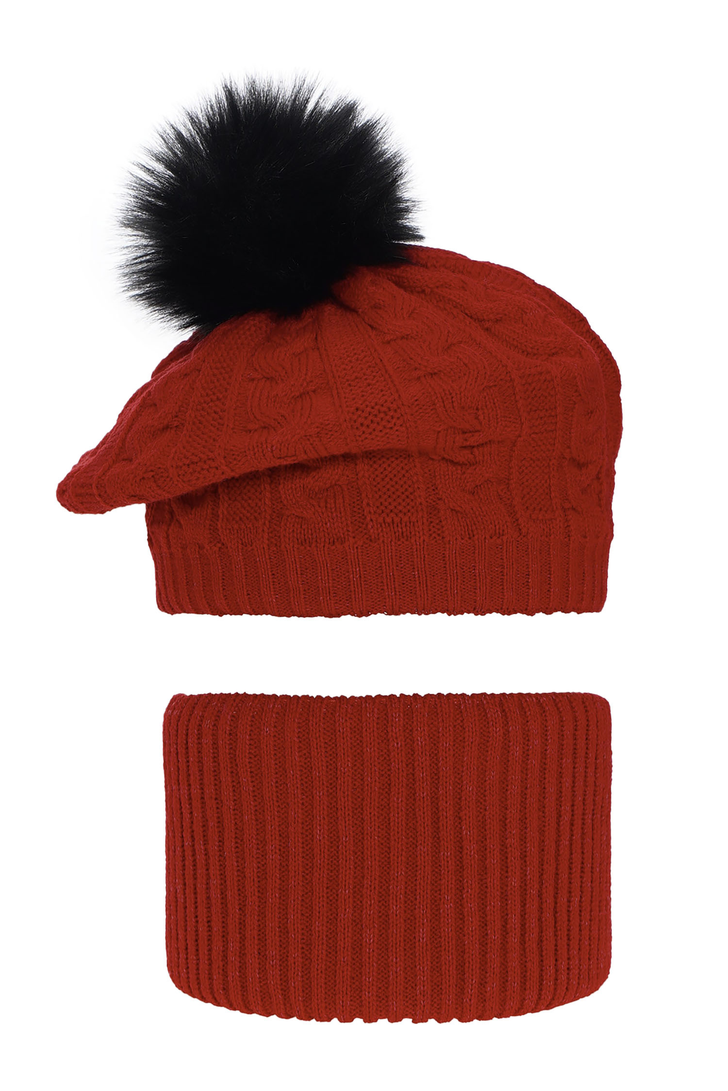 Beret i komin dla dziewczynki zimowy komplet, czerwony, z pomponem Koffi