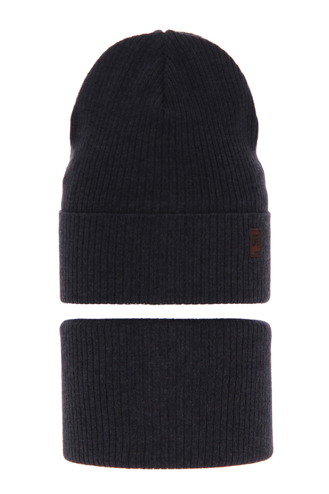 Czapka i komin dla chłopca jesienny, wiosenny komplet, z bawełną, granatowy Dragon