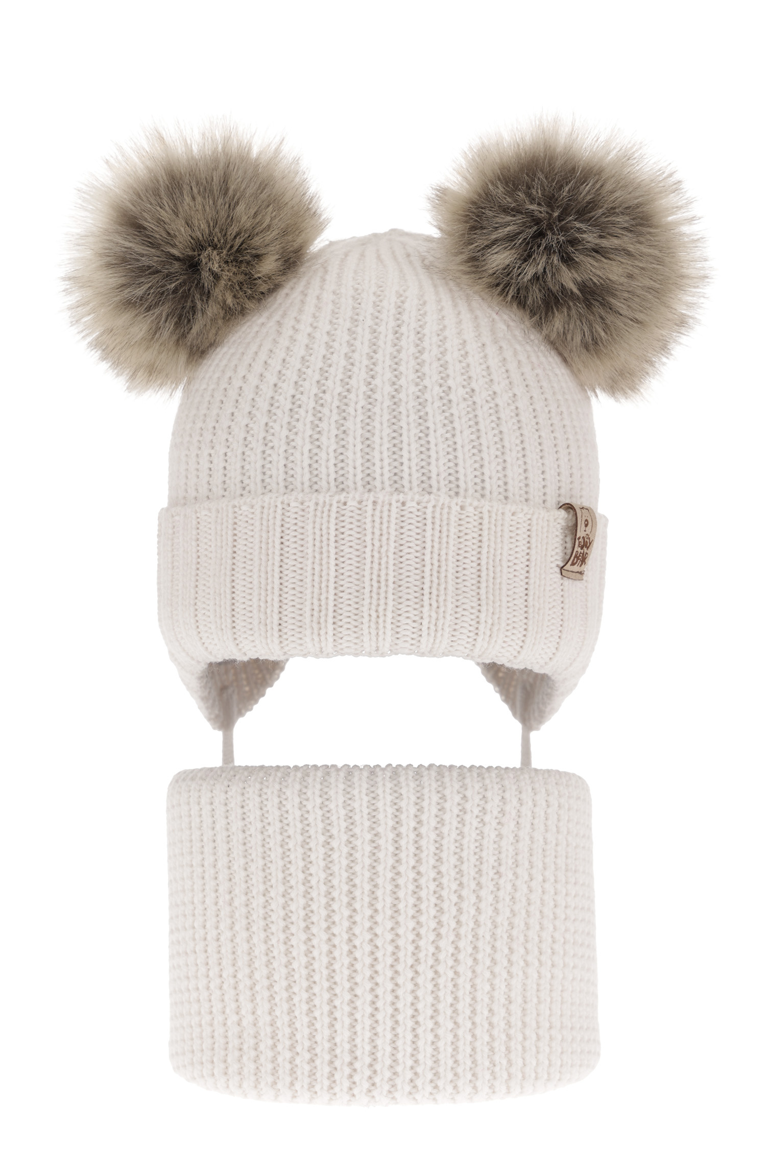 Charakterystyczne dwa pompony wykonane z miękkiego eko futra nadają czapce uroczego wyglądu, podczas gdy struktura w prążki wprowadza modny akcent. Bawełniane podszycie czapki zapewnia dodatkową ochronę przed wiatrem oraz zwiększa komfort noszenia, eliminując ryzyko podrażnień skóry.