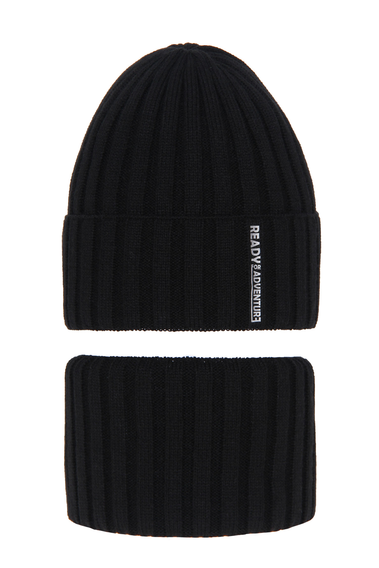 Czapka i komin dla chłopca zimowy komplet, czarny Livido