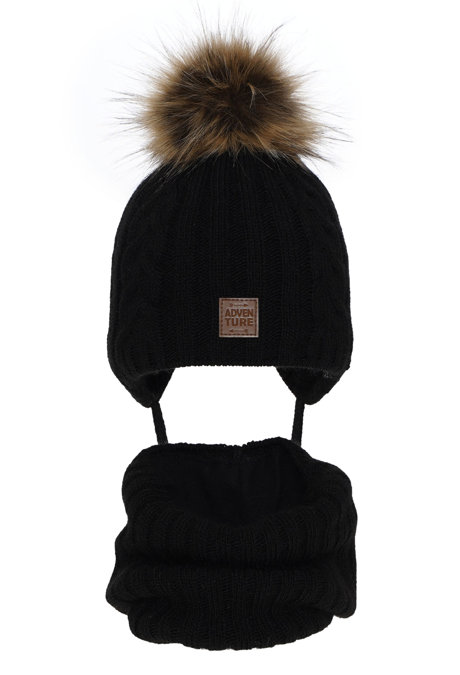 Czapka i komin dla chłopca zimowy komplet, czarny, z pomponem Casper