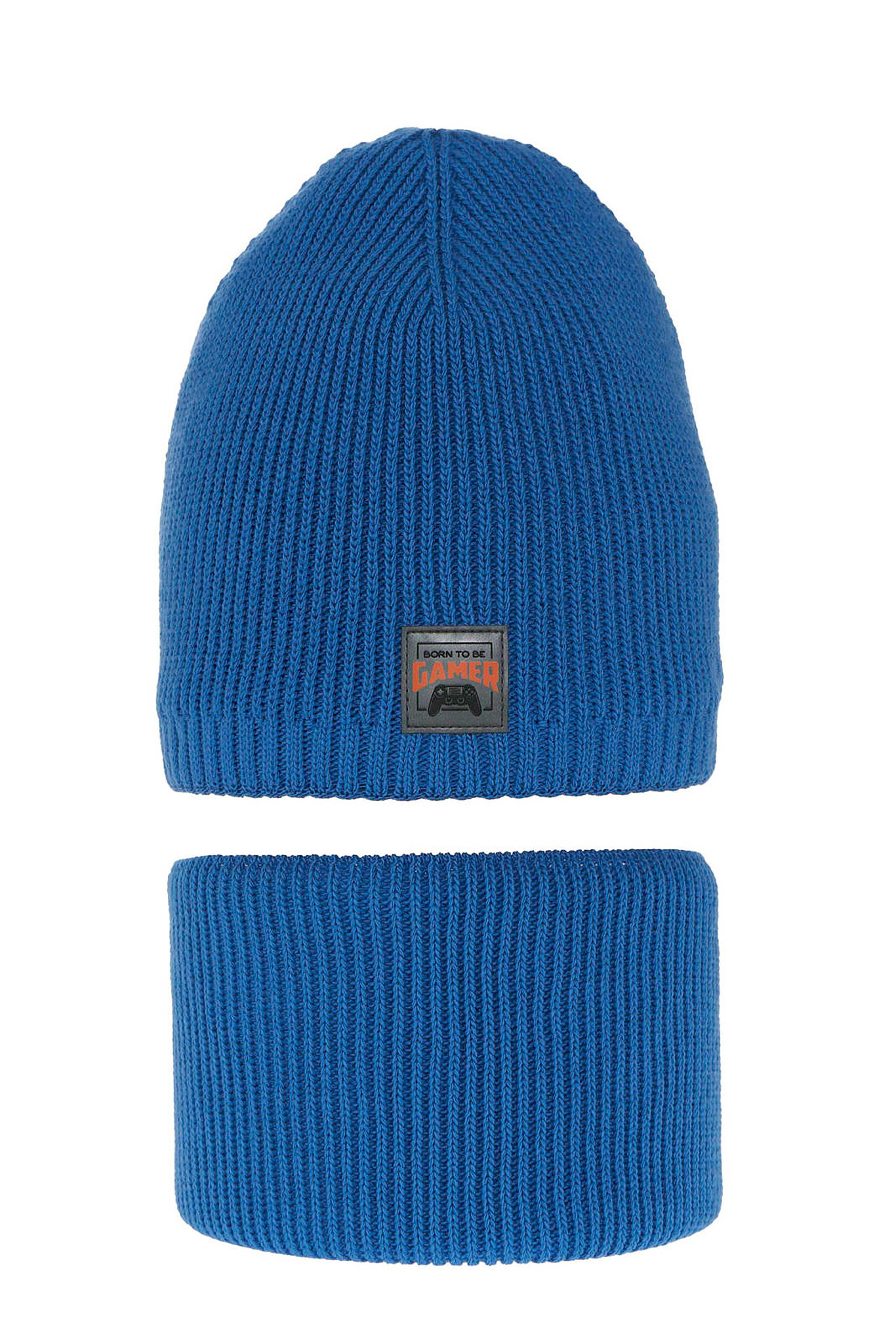 Czapka i komin dla chłopca zimowy komplet, niebieski Gami