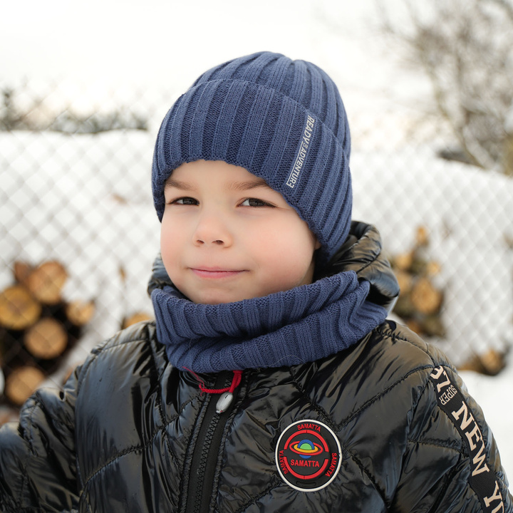 Czapka i komin dla chłopca zimowy komplet, niebieski Livido