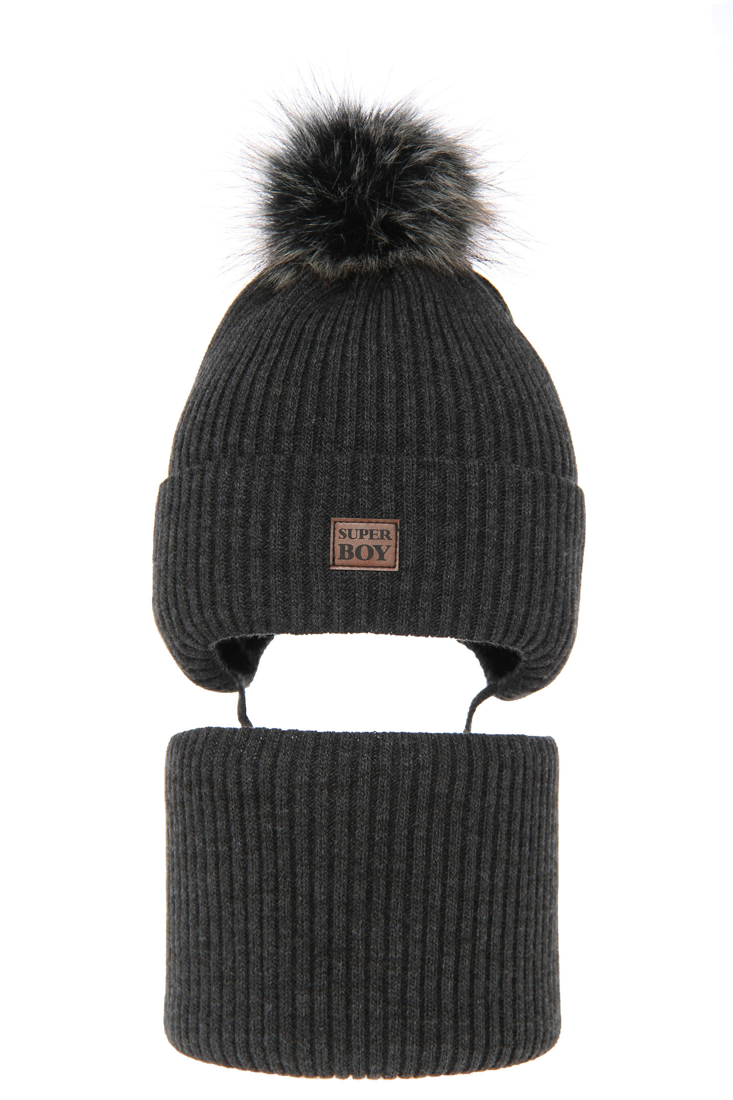 Czapka i komin dla chłopca zimowy komplet, szary, wiązany Denzel