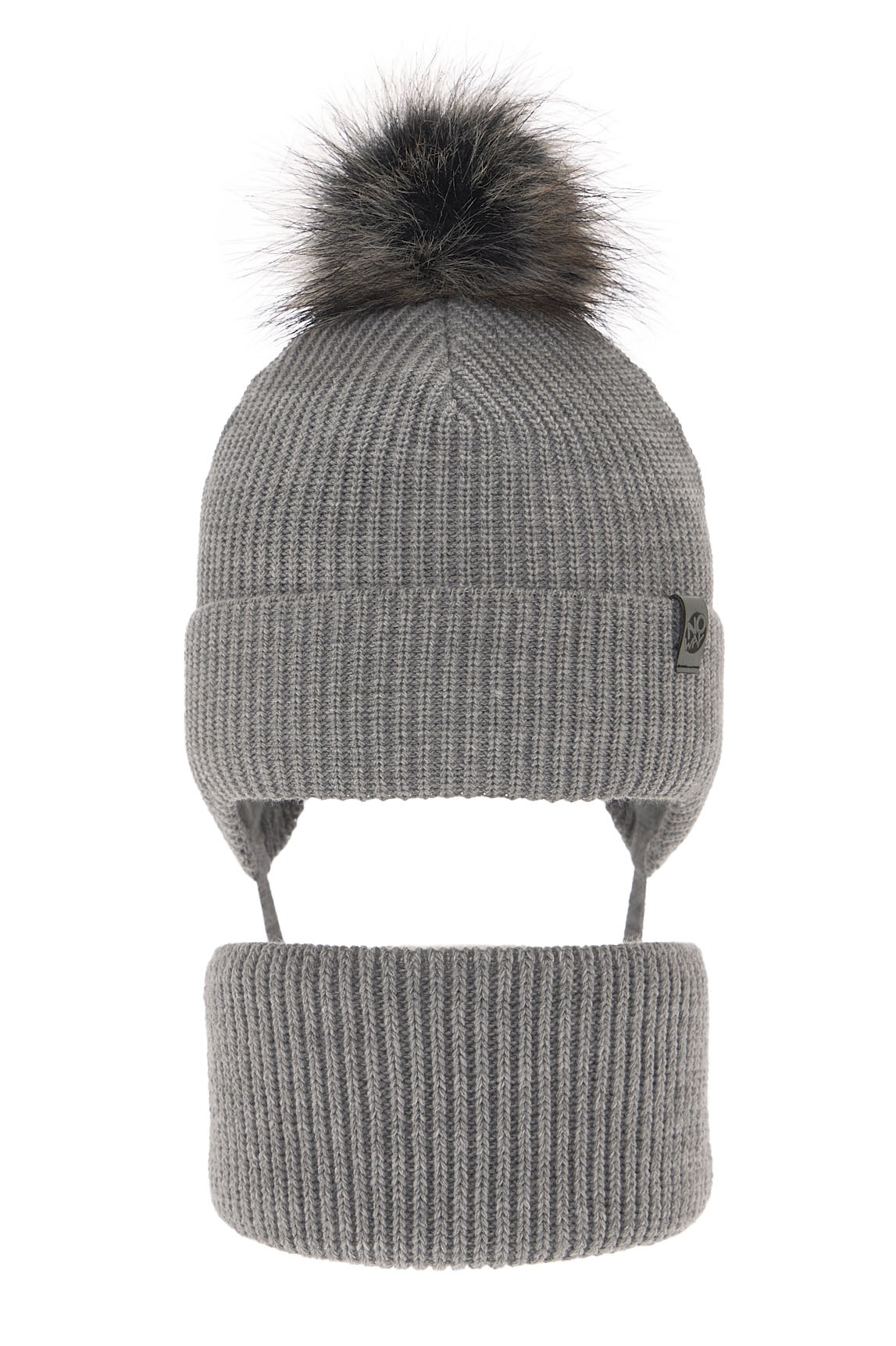 Czapka i komin dla chłopca zimowy komplet, szary, z pomponem, wiązany Honed