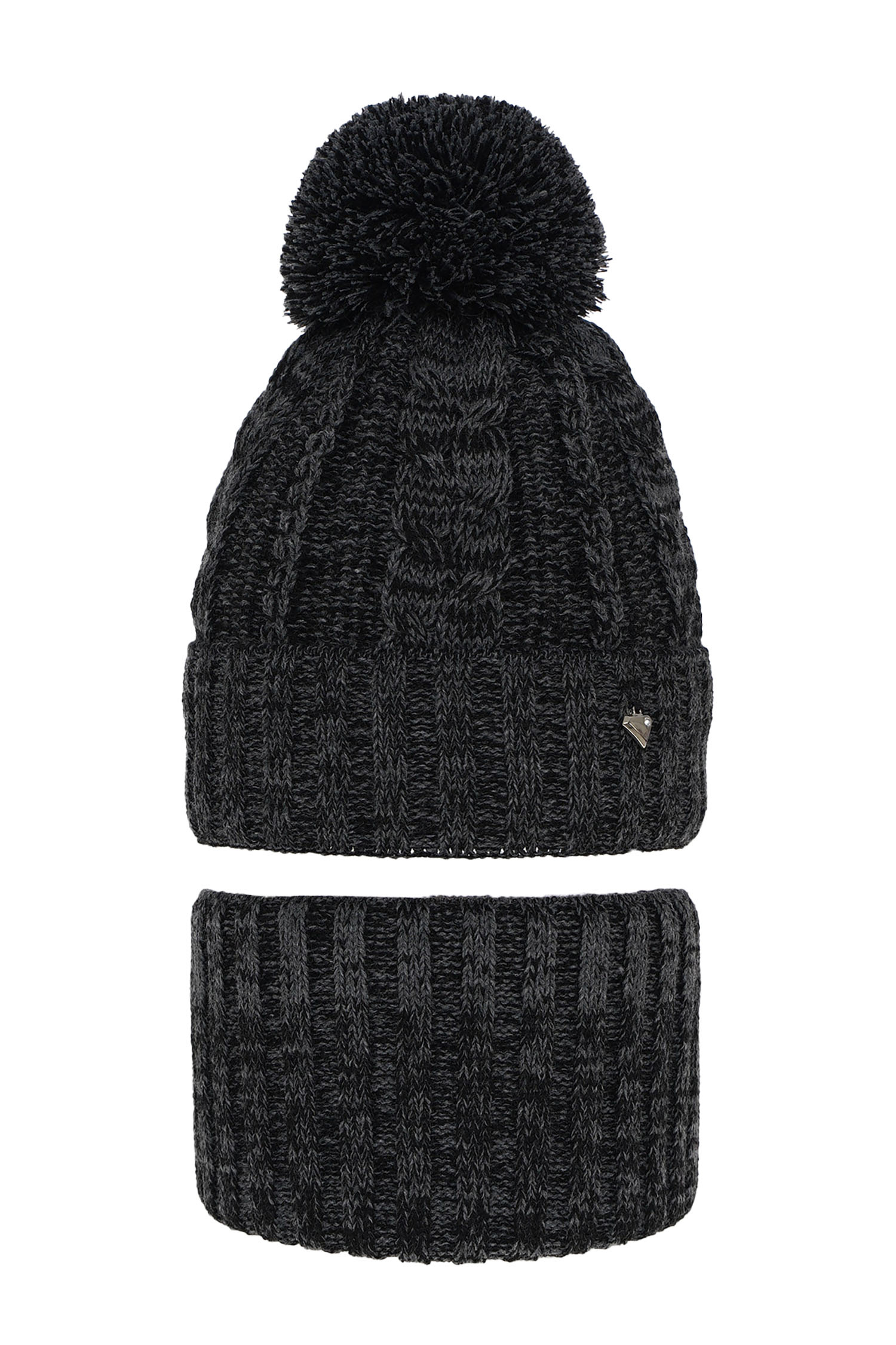 Czapka i komin dla dziewczynki zimowy komplet, ciemnoszary, z pomponem Maroko