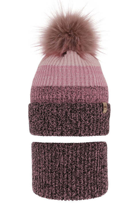 Czapka i komin dla dziewczynki zimowy komplet, czarny, z pomponem Gimena