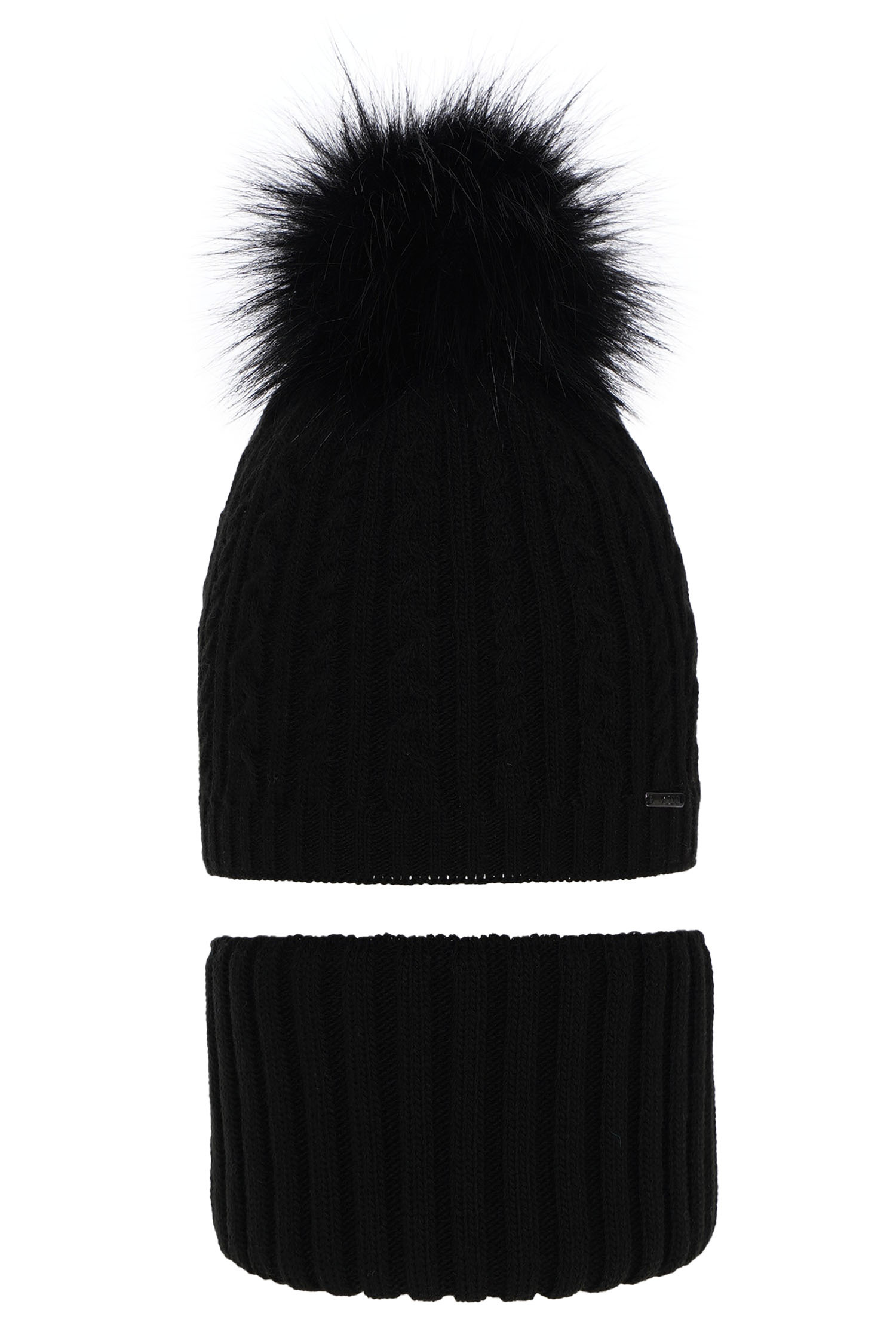 Czapka i komin dla dziewczynki zimowy komplet, czarny, z pomponem Rima