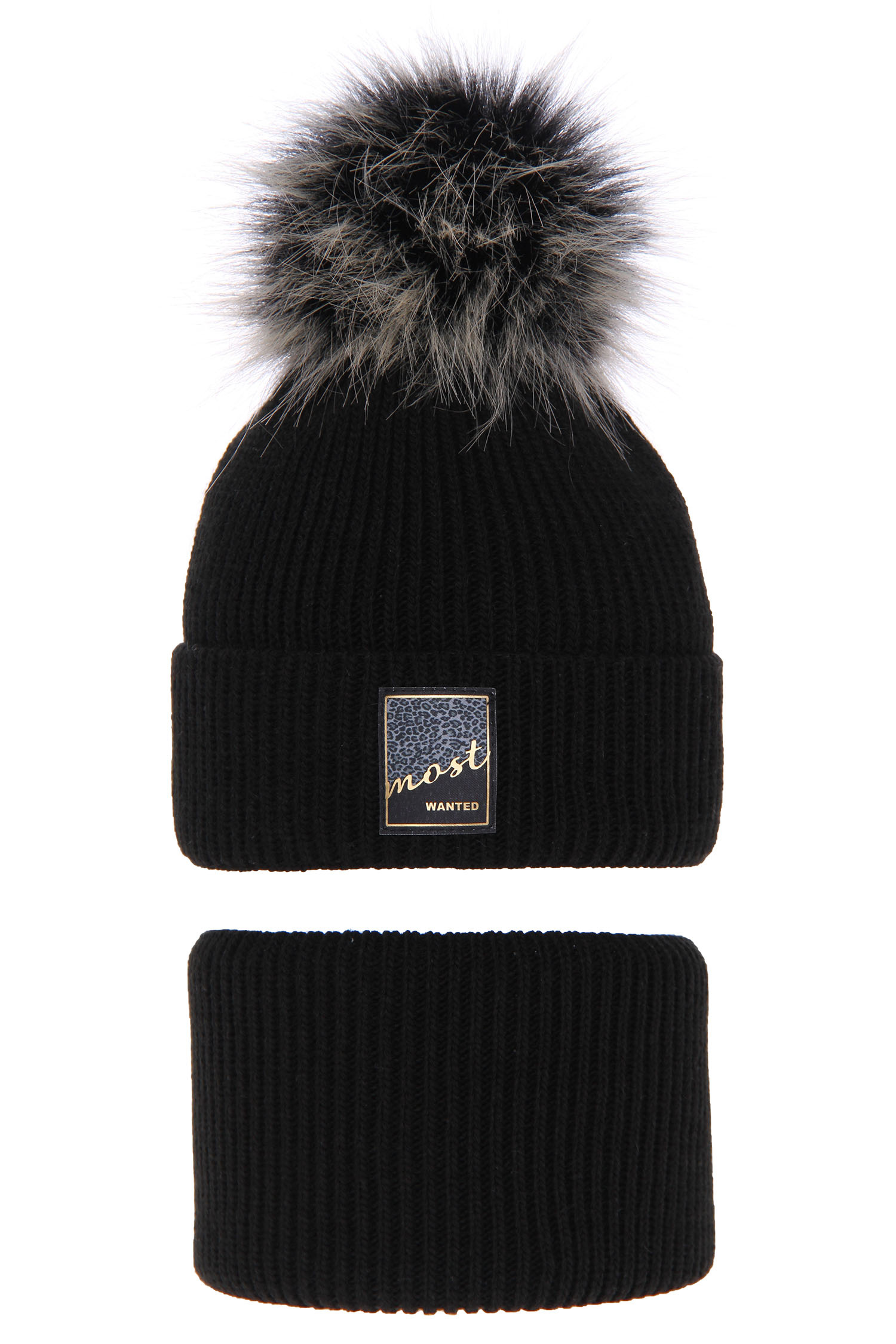 Opinie o Czapka i komin dla dziewczynki zimowy komplet, czarny, z pomponem Sycylia