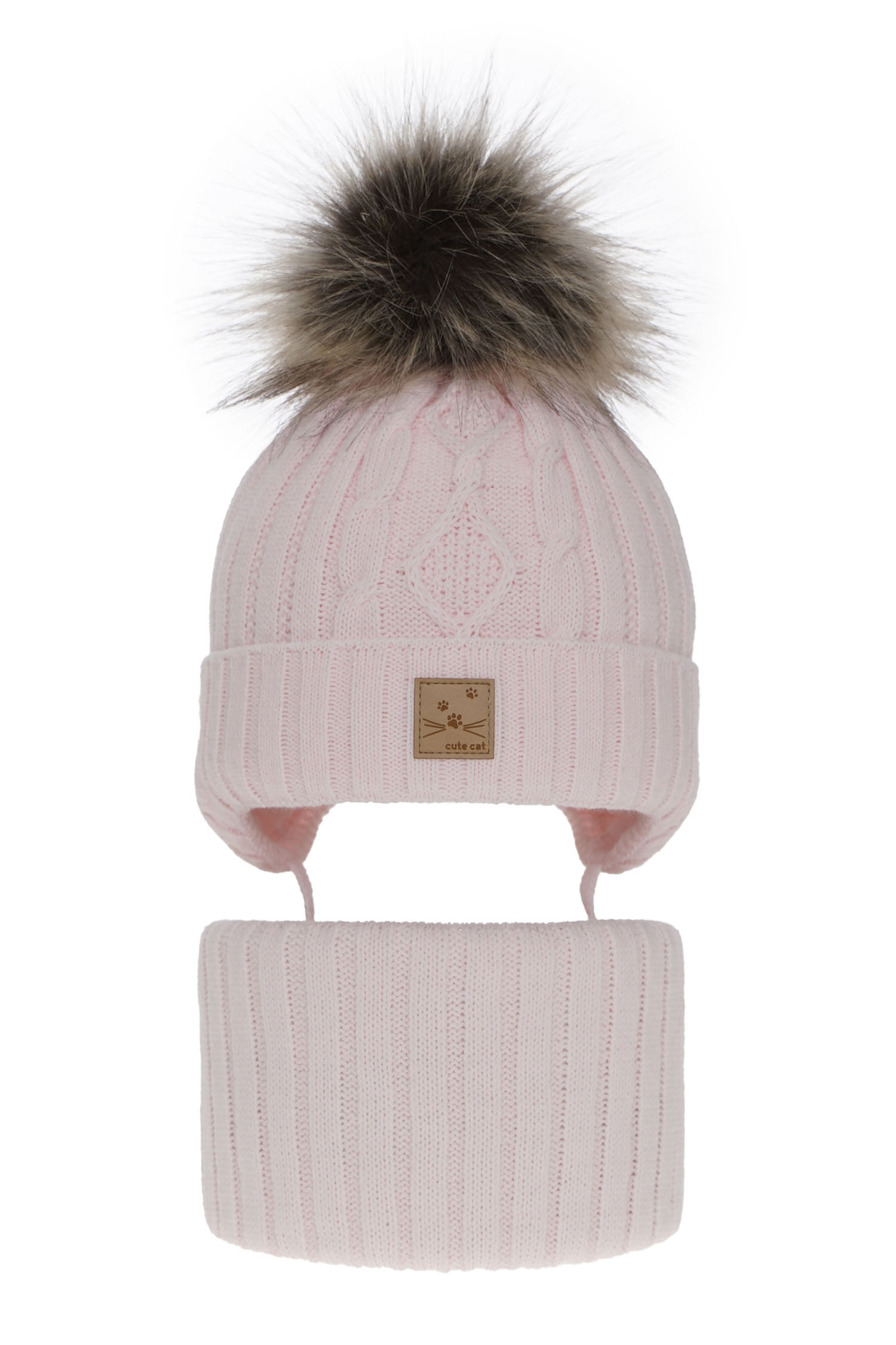 Opinie o Czapka i komin dla dziewczynki zimowy komplet, różowy, z pomponem Aida