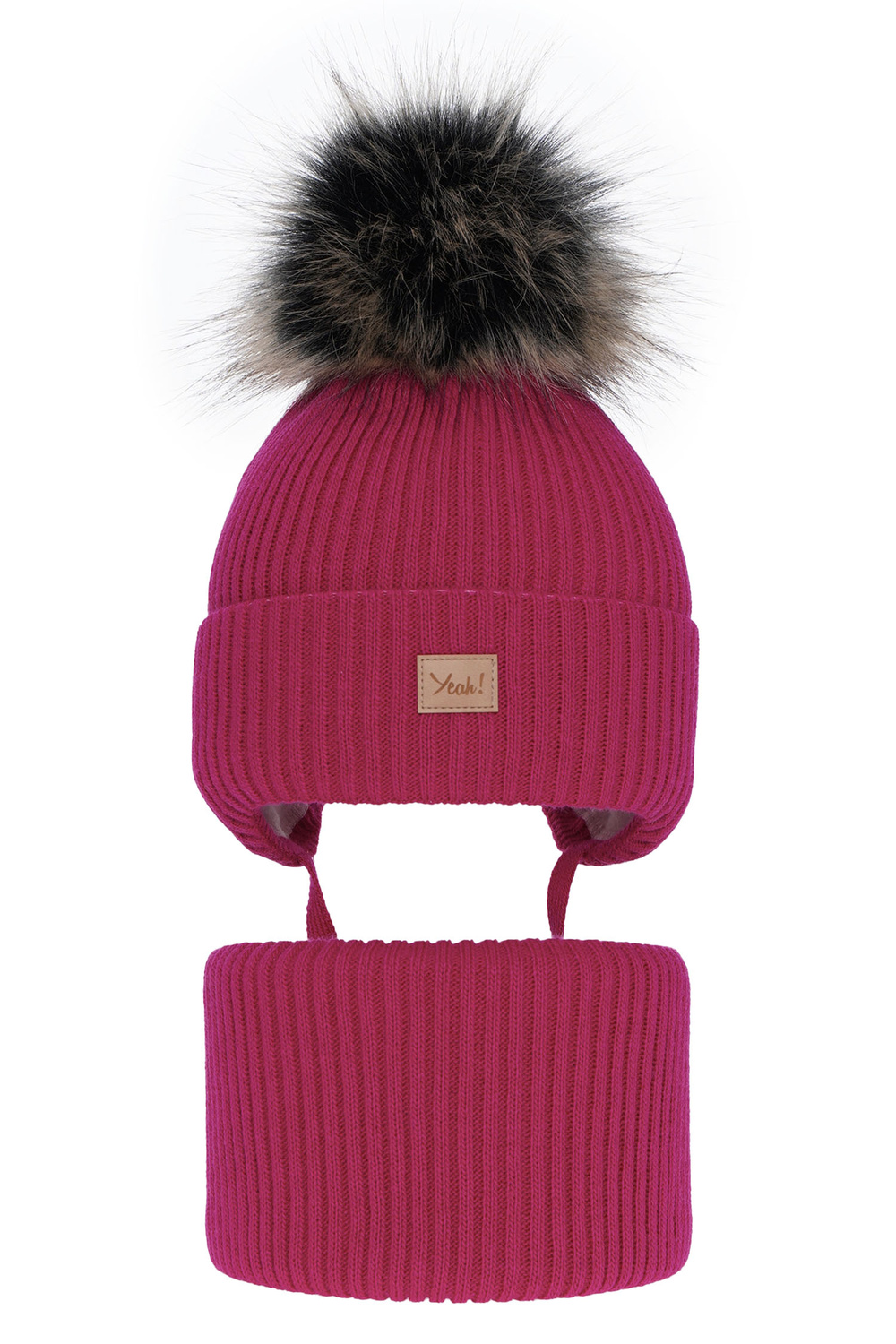 Opinie o Czapka i komin dla dziewczynki zimowy komplet, różowy, z pomponem Dilajla