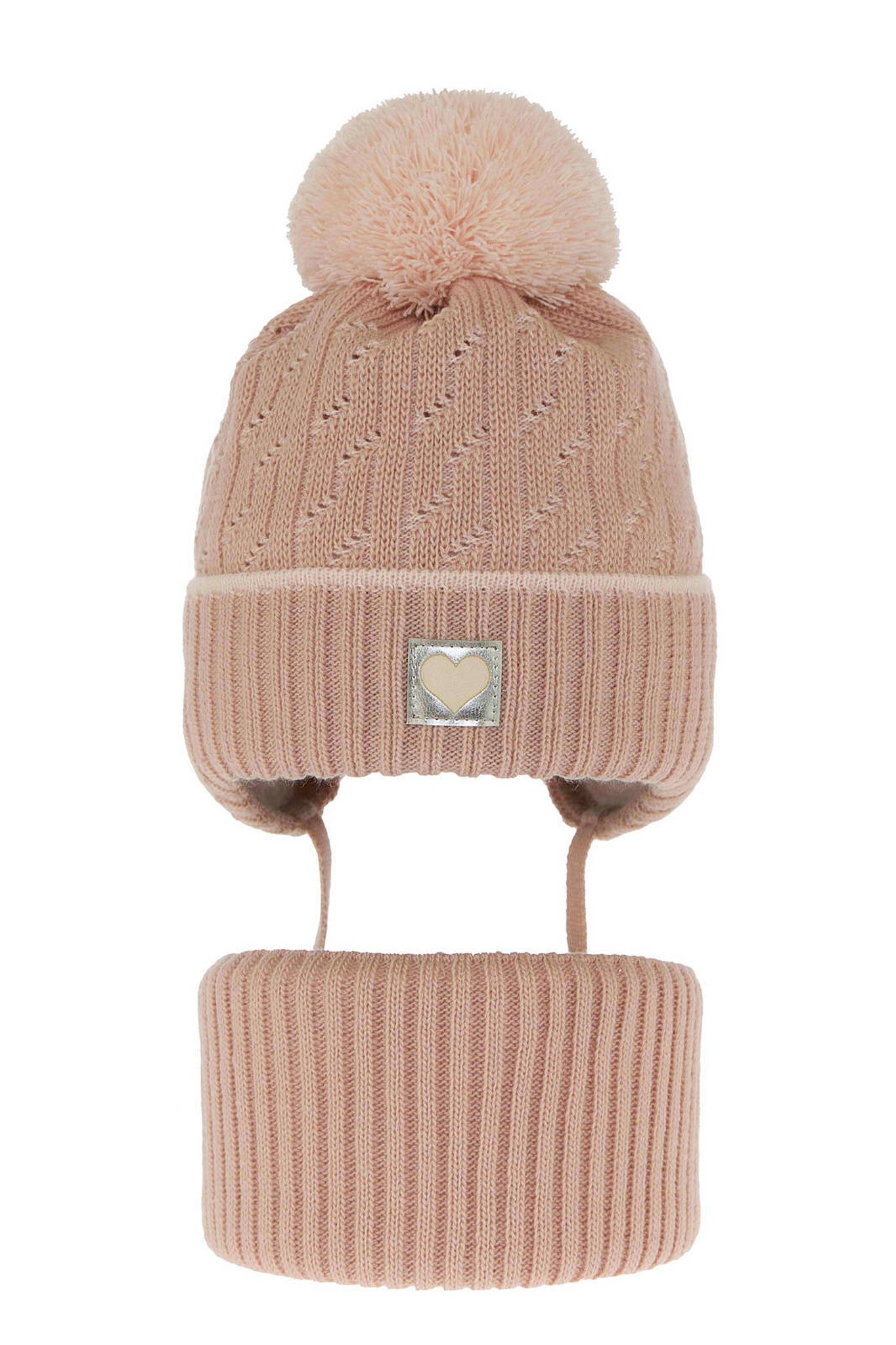 Opinie o Czapka i komin dla dziewczynki zimowy komplet, różowy, z pomponem Natka
