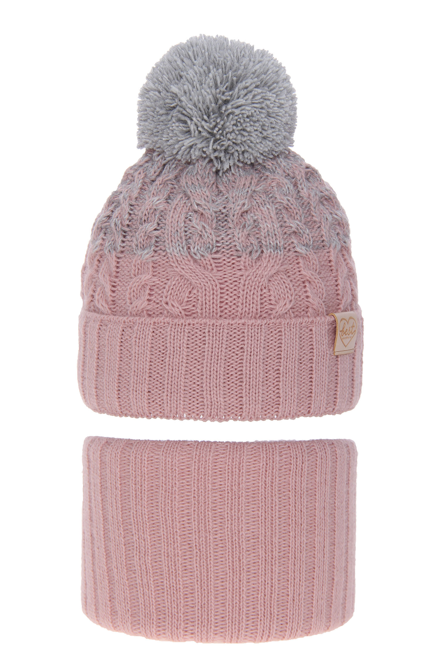 Czapka i komin dla dziewczynki zimowy komplet, różowy, z pomponem Zendaya