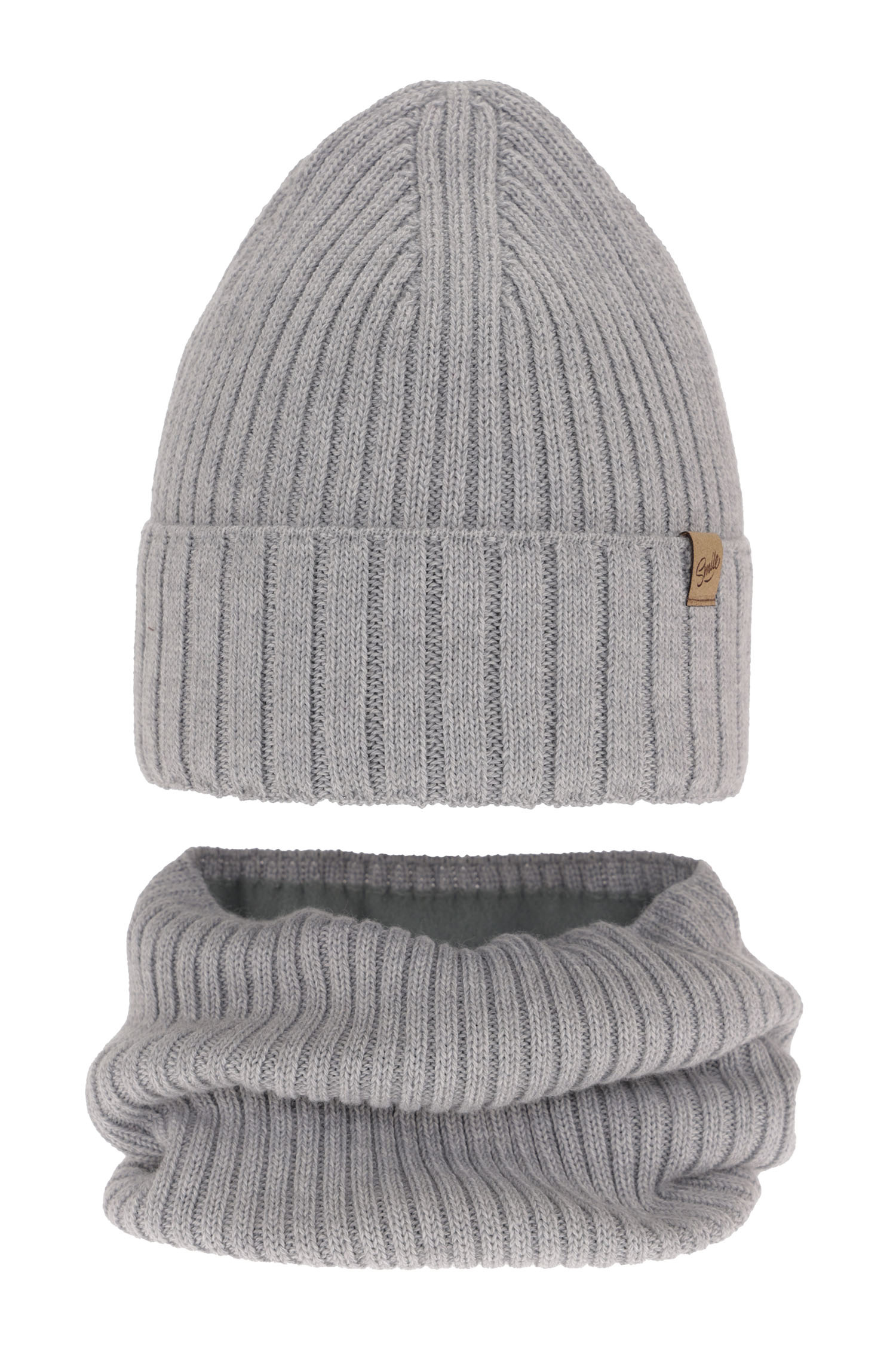 Czapka i komin dla dziewczynki zimowy komplet, szary, wełniany merino Mesalia