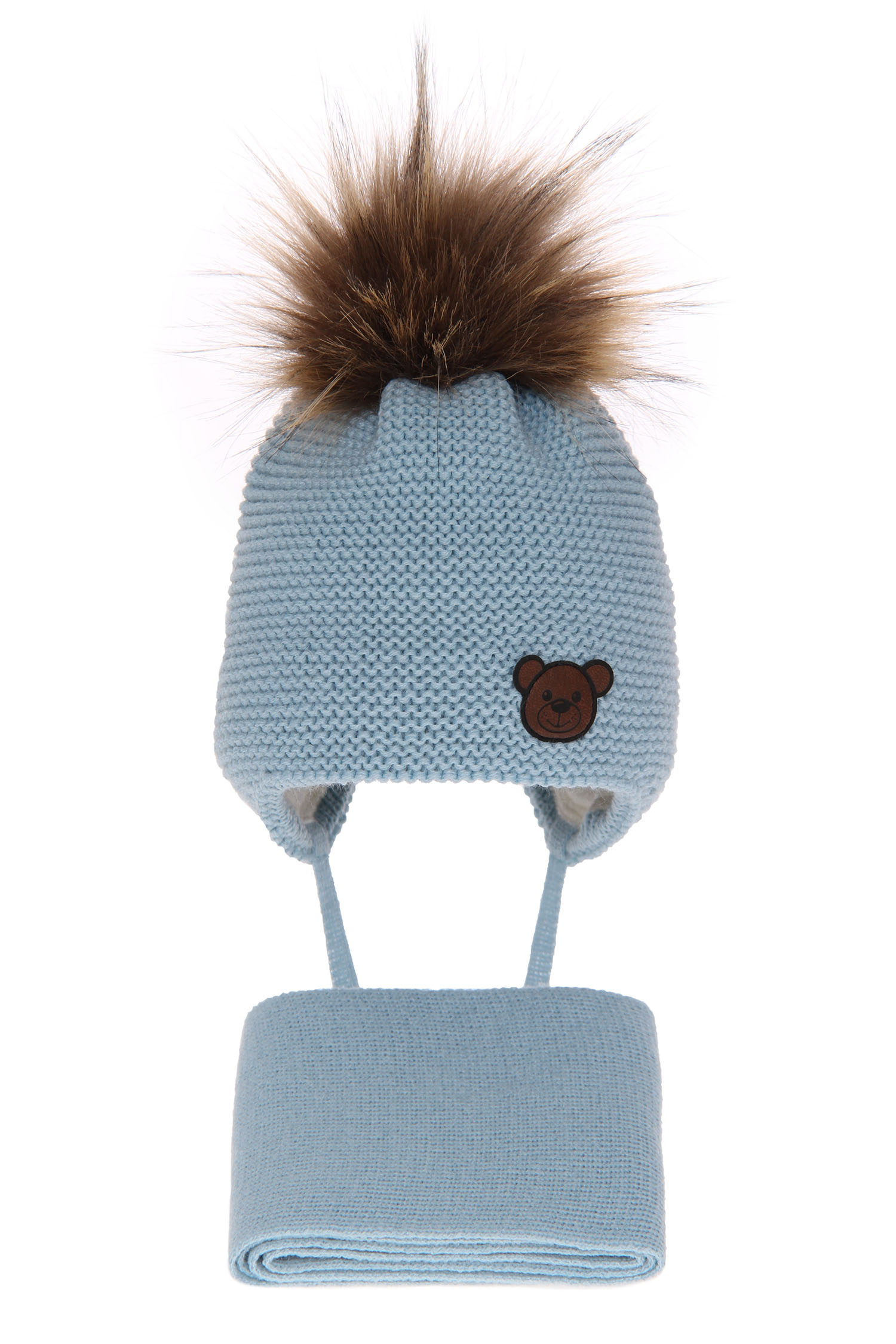 Czapka i szalik dla chłopca zimowy komplet, błękitny, z pomponem, wiązany Banksi