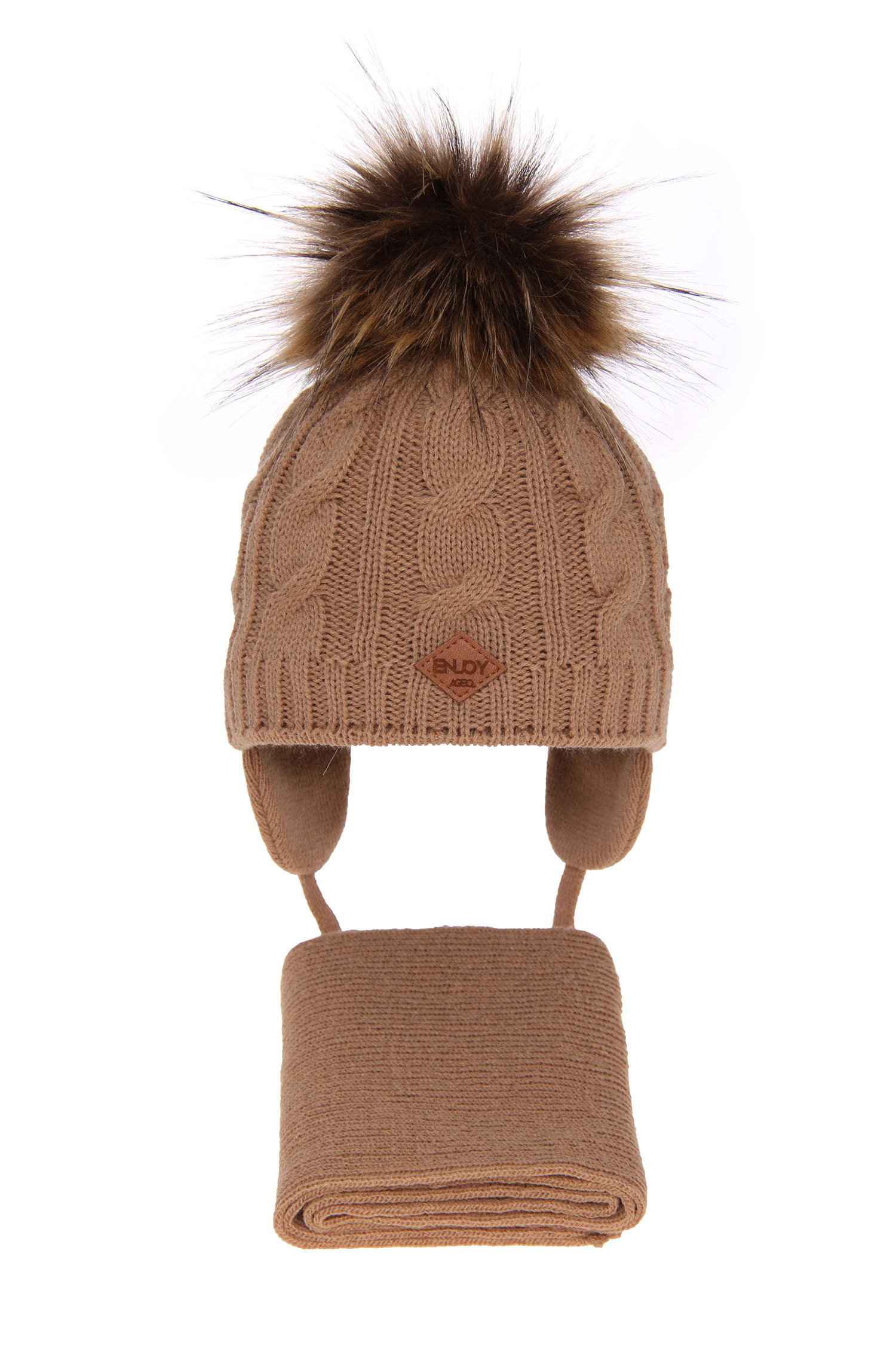 Opinie o Czapka i szalik dla chłopca zimowy komplet, camel, z pomponem Minor