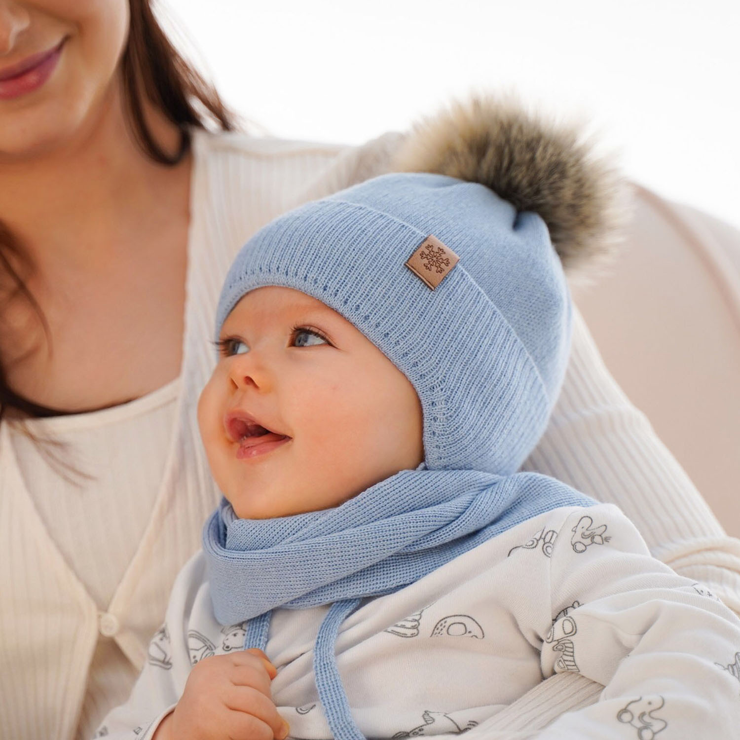 Elastyczna konstrukcja czapki i szalika sprawia, że komplet zimowy dla chłopca dopasowuje się do kształtu głowy i szyi, zapewniając maksymalny komfort noszenia bez uciskania. Pompon z eko futra nie tylko wygląda uroczo, ale również dodaje charakteru całemu zestawowi.
