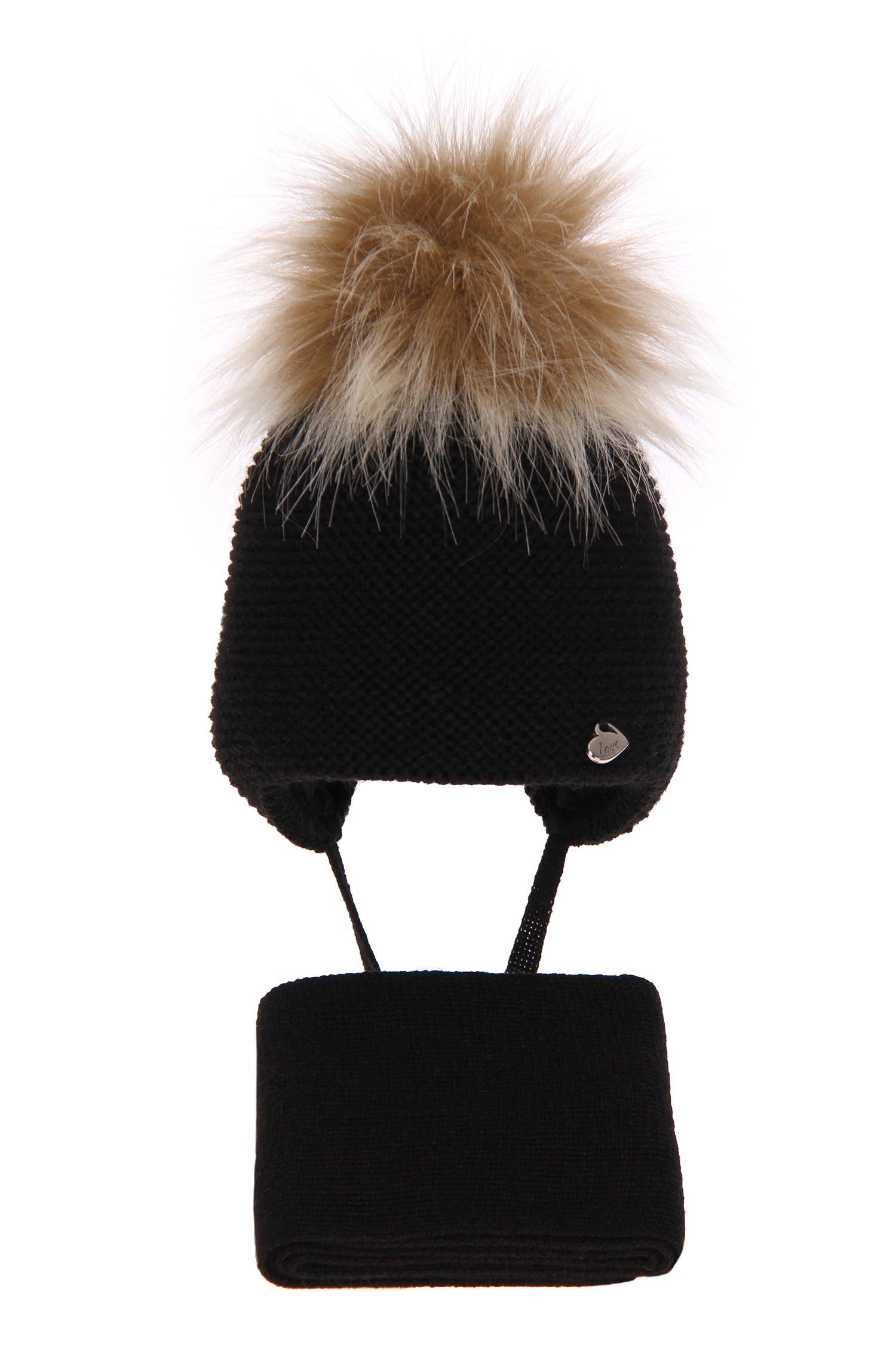 Czapka i szalik dla dziewczynki zimowy komplet, czarny, z pomponem Aimi