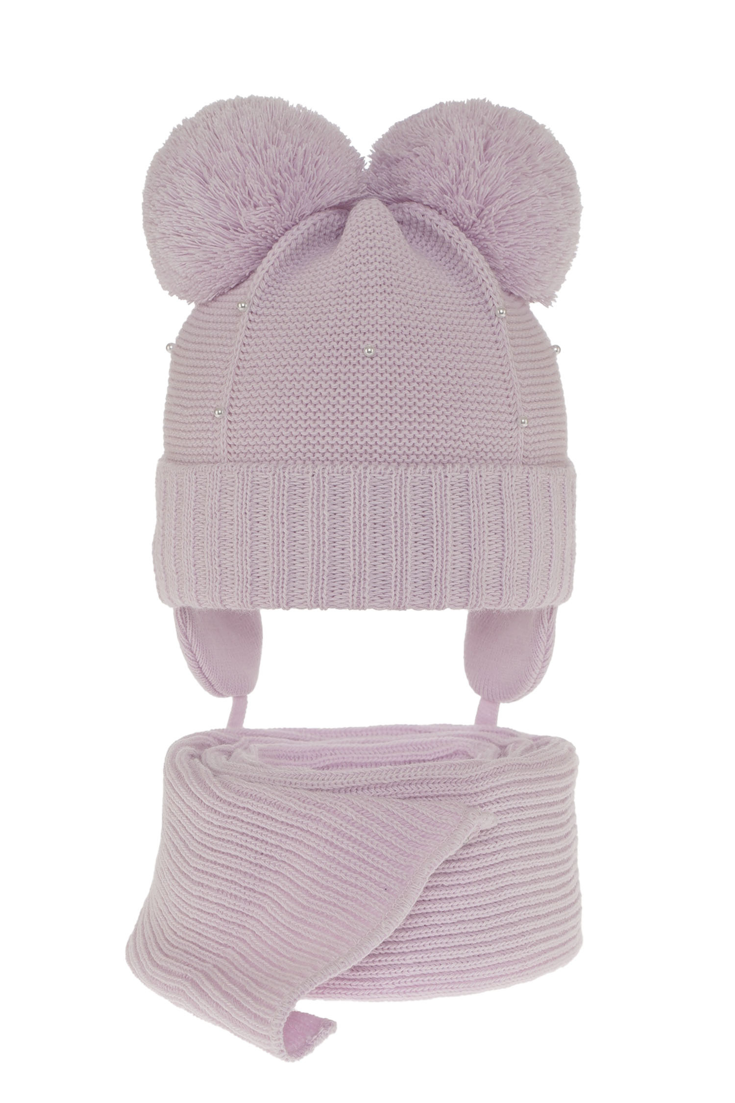 Czapka i szalik dla dziewczynki zimowy komplet, liliowy, z dwoma pomponami Fibien