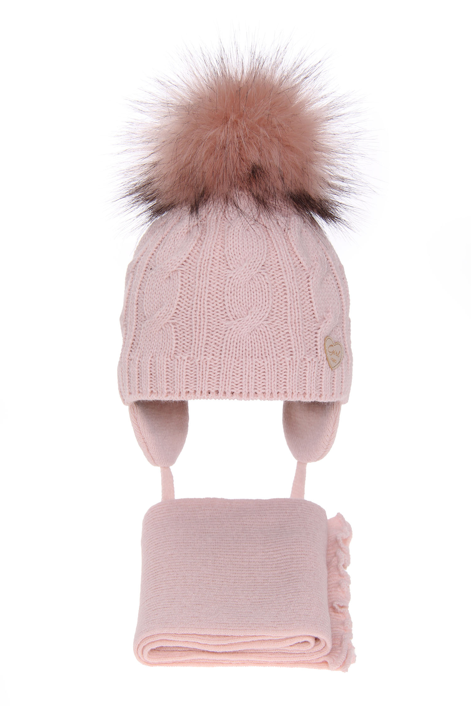 Czapka i szalik dla dziewczynki zimowy komplet, różowy, z pomponem Morena