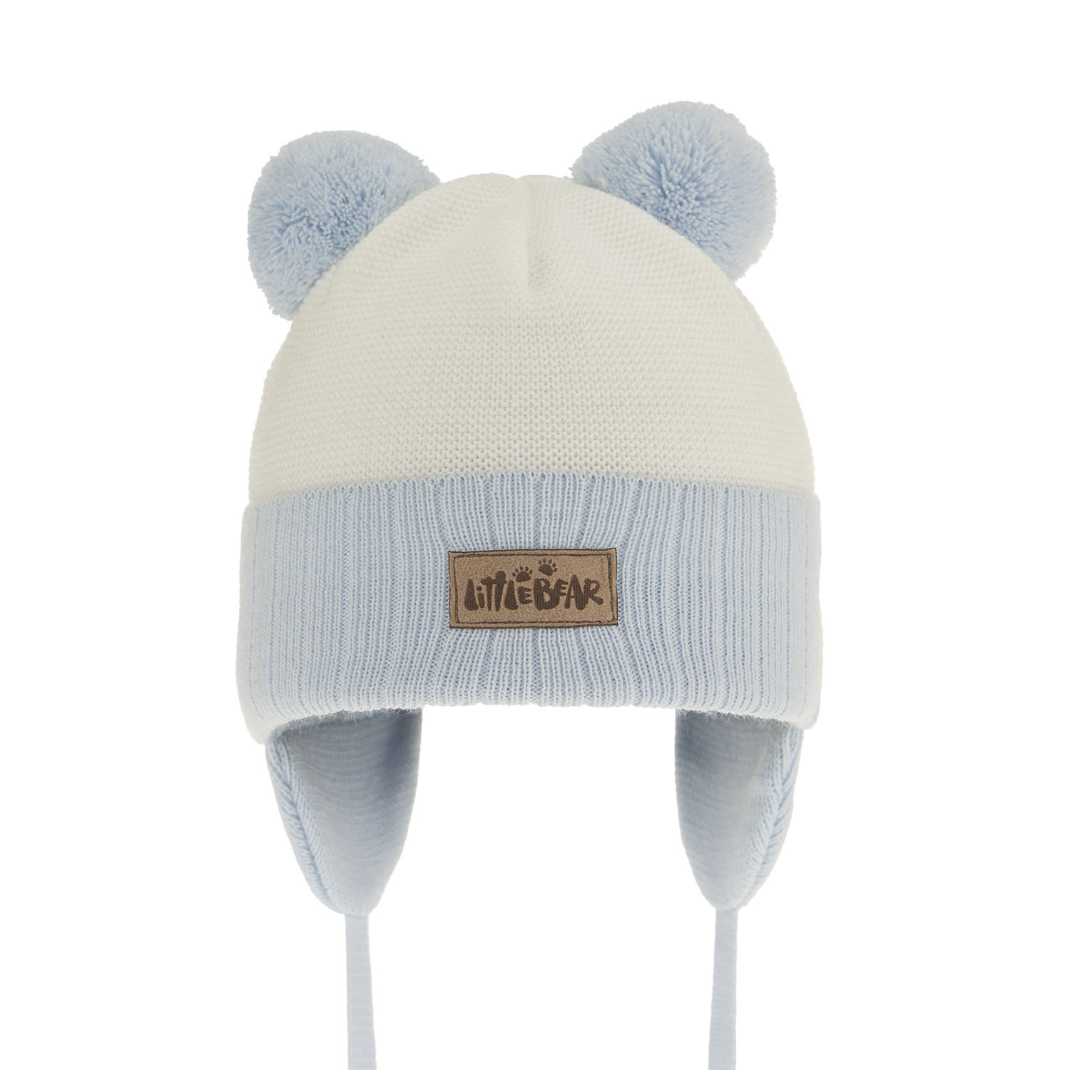 Czapka jesienna, wiosenna dla chłopca, błękitna, z dwoma pomponami, wiązana, Gigant