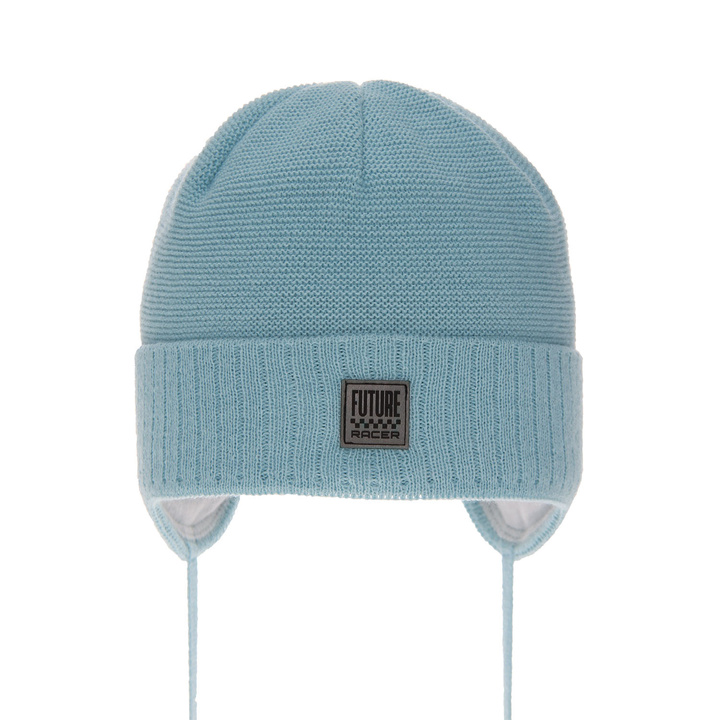 Czapka jesienna, wiosenna dla chłopca, niebieska, wiązana Parys