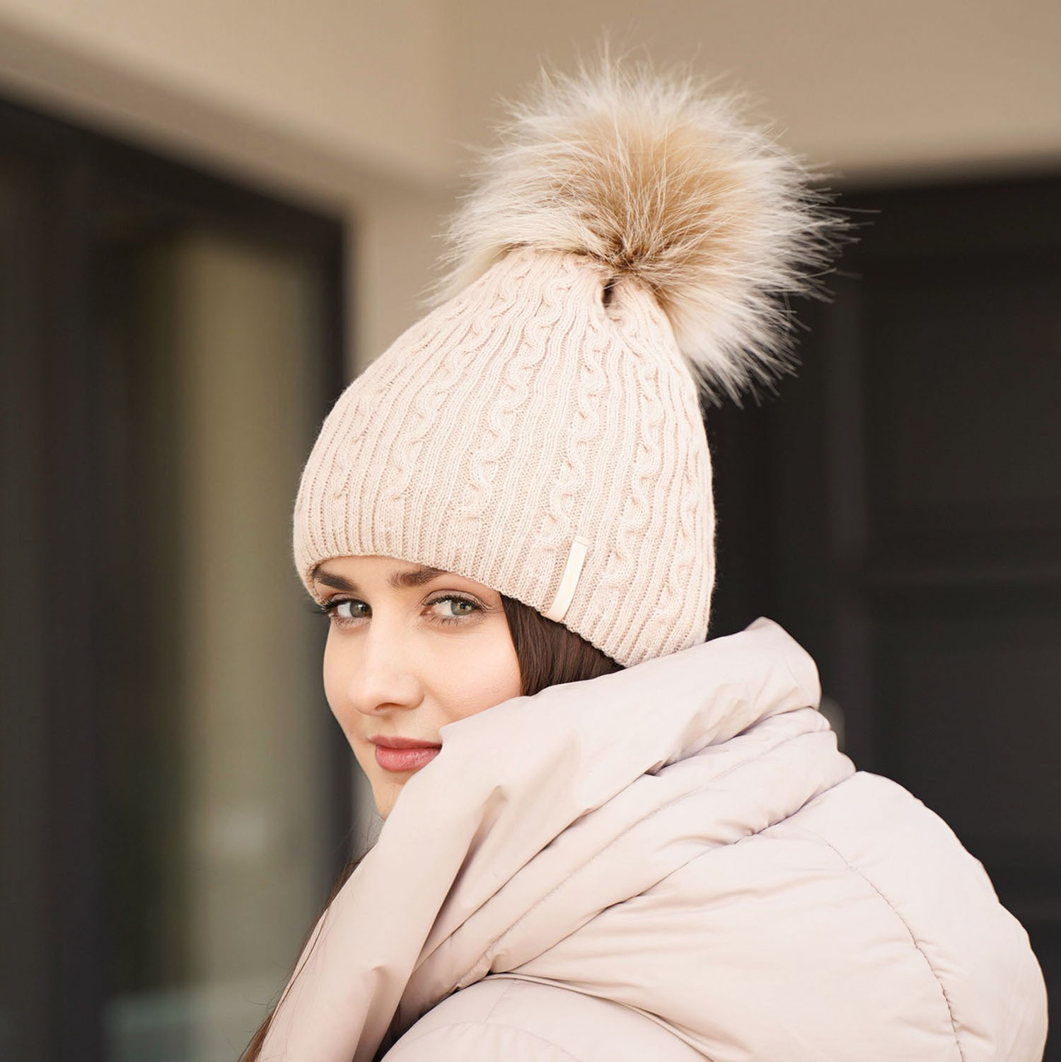 - Elegancki pompon z ekofutra