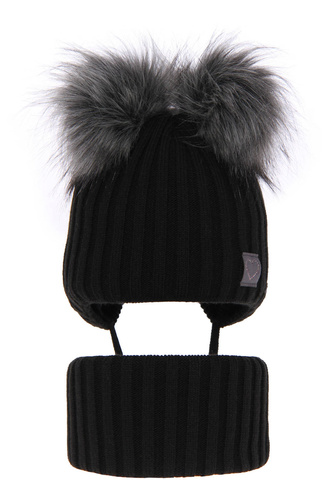 Opinie o Czapka i komin dla dziewczynki zimowy komplet, czarny, z dwoma pomponami, wiązana Telisa 4.98